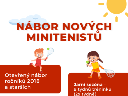 Nábory minitenistů budou probíhat 20. 4. 2023 a 27. 4. 2023.